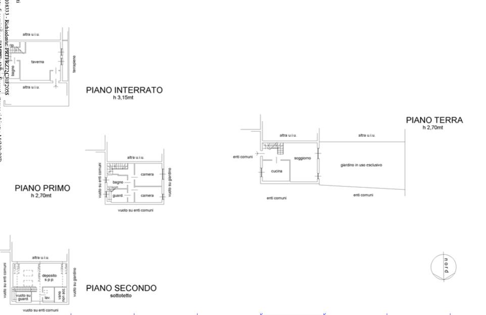 Villetta a schiera laterale posta su quattro livelli in contesto signorile con servizio portineria: al piano terra con soggiorno e cucina abitabile, al primo piano due camere da letto, un locale guardaroba ed un bagno, al piano sottotetto un ampio locale ed una lavanderia/bagno, li piano interrato comunicante con l'autorimessa ospita un ampio locale taverna finestrato con un bagno ed un ripostiglio. Completano l'unità un giardino piantumato in uso esclusivo di circa 95 mq. posto su un lato.