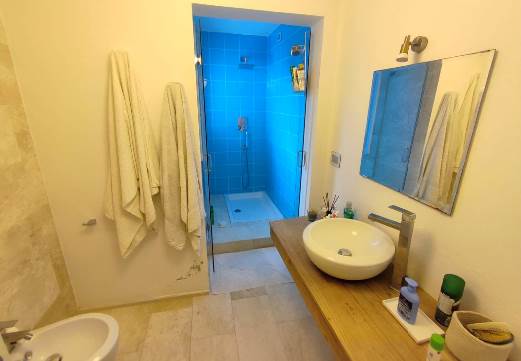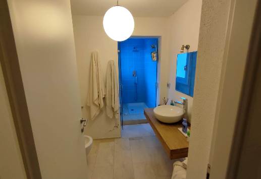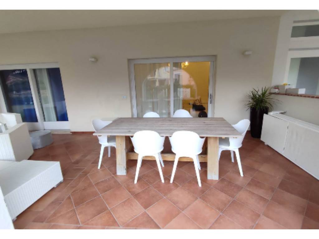 La luminosità è buona grazie alle ampie porte finestre. L’esposizione principale dell’appartamento è verso ovest con la grande veranda coperta, sulla quale si aprono le grandi vetrate del soggiorno e di una camera da letto, verso il prospiciente giardino, dal quale si ha l’accesso al vialetto che porta direttamente alla spiaggia. Le condizioni statiche sono buone.