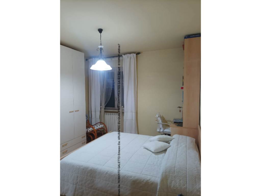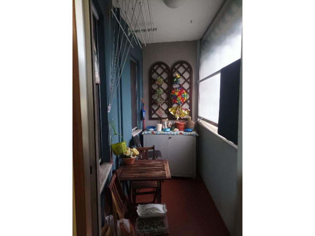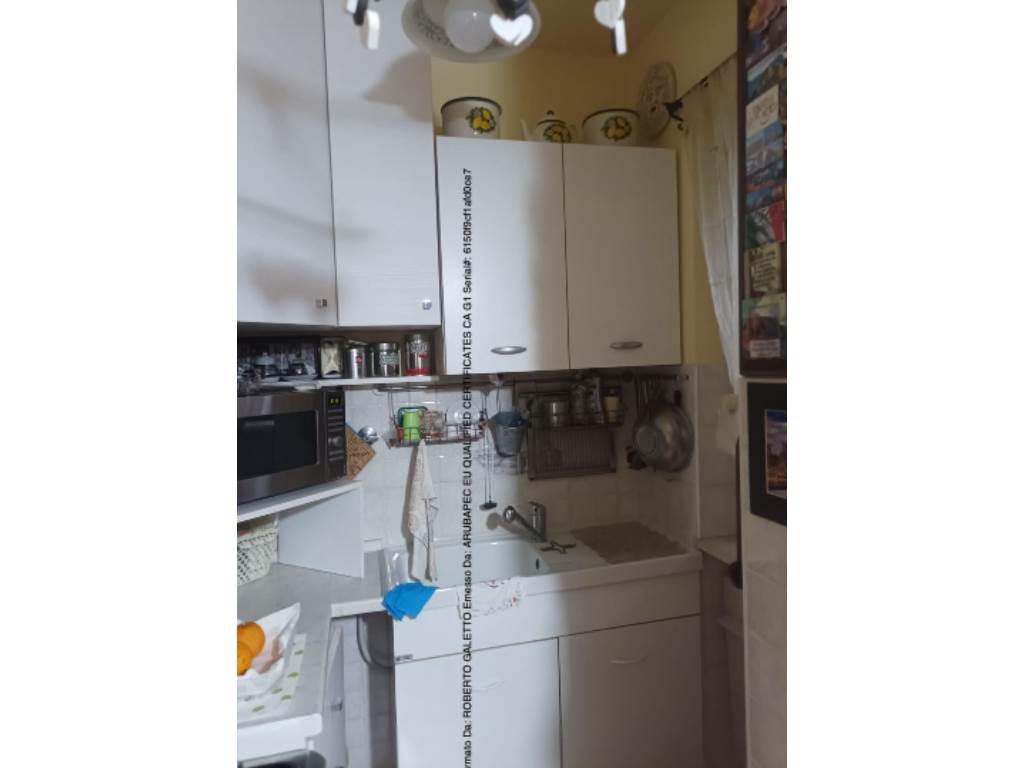 Appartamento al piano quinto (sesto fuori terra), munito di ascensore, composto da: ingresso/disimpegno, locale soggiorno, cucinino, bagno, terrazzino con accesso dal soggiorno, ripostiglio e una camera da letto; al piano interrato cantina pertinenziale alle coerenze: altra cantina su due lati, corridoio comune e sottosuolo cortile comune; al piano interrato autorimessa.