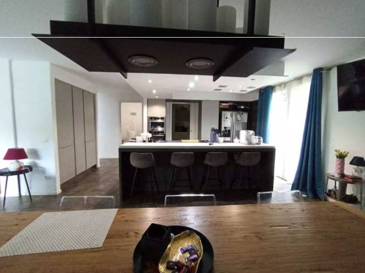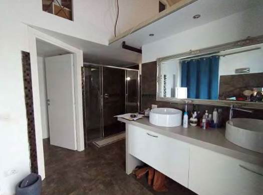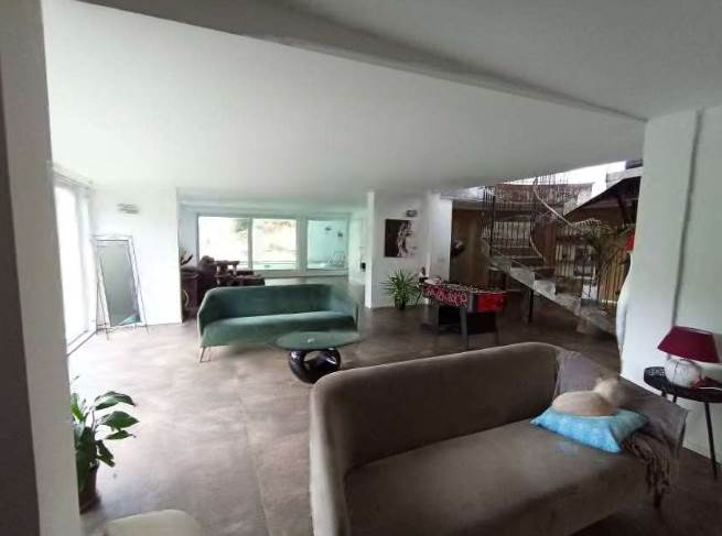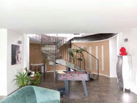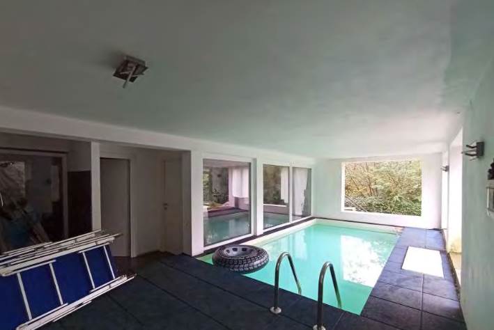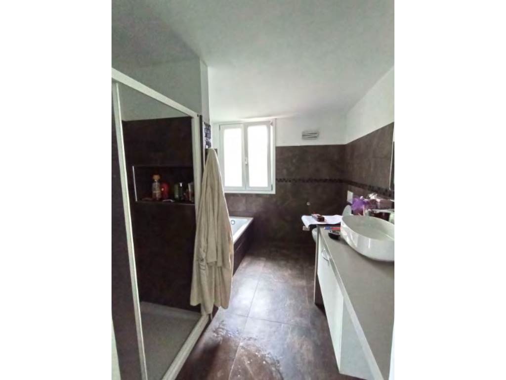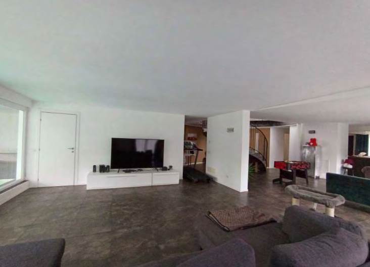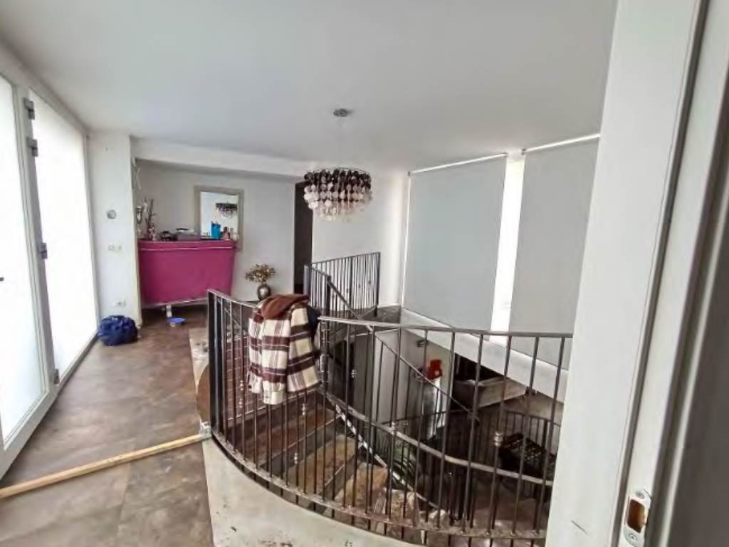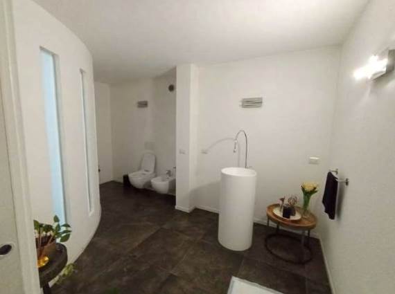 - a piano seminterrato, 3 vani sgombero, ripostiglio, bagno con antibagno, lavanderia e vano accessorio con piccola piscina (vasca); di fatto (diversamente dalla composizione risultante a catasto) così composto: a piano terra ingresso/vano scala centrale, zona notte nella parte ad est con disimpegno, 2 camere, bagno e soppalco utilizzato per camera/cabina armadio e ripostiglio e nella zona ovest disimpegno, cabina armadio, bagno con grande antibagno, soppalco utilizzato come camera e terrazza; a piano seminterrato grande zona giorno suddivisa in vano scala/disimpegno centrale, cucina, zona pranzo, soggiorno, bagno, lavanderia, accessorio con piccola piscina (vasca) e balcone sul lato sud ed in parte ad est.